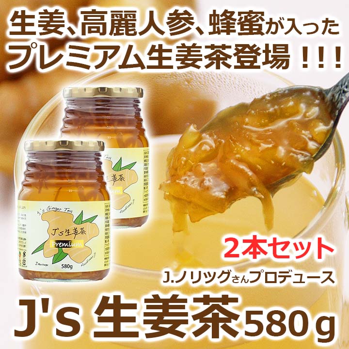 J’s 生姜茶プレミアム 580g×2本 料理研究家・J.ノリツグさんプロデュース 高麗人参(紅参)蜂蜜入り生姜茶 常温便・クール冷蔵便可【送料無料】 箱潰れ訳あり品