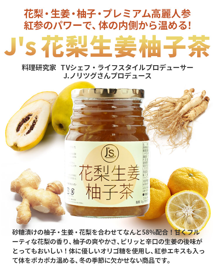 J’s 花梨生姜柚子茶580g×3本セット 料理研究家・J.ノリツグさんプロデュース 常温便・クール冷蔵便可 【送料無料】