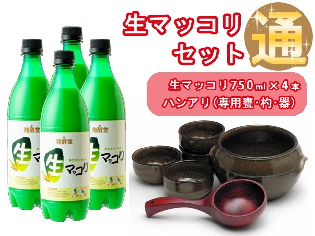 生マッコリ通セット(麹醇堂生マッコリ750ml×4本、ハンアリ(龜、器×4個、杓)セット) 冷蔵便【送料無料】/韓国 食品 韓国グルメ 韓国料理 お取り寄せ クール冷蔵便