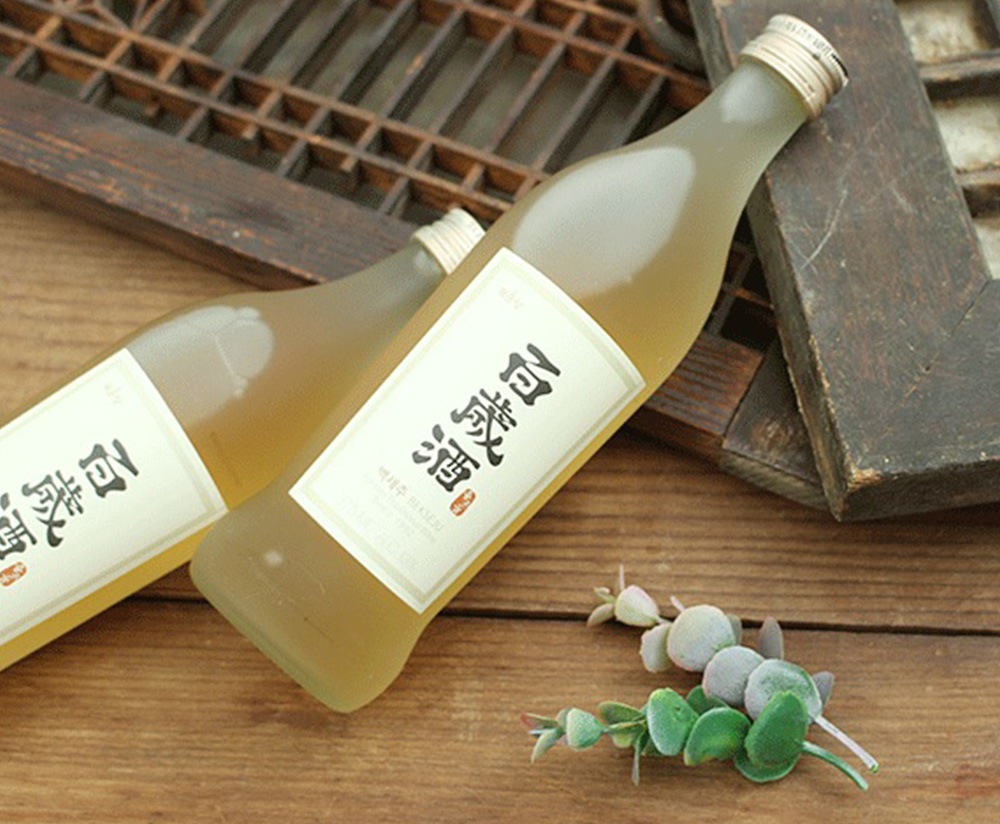厳選されたお米と10種類のハーブをブレンドした百歳酒は、白ワインのような味わいを楽しめる体にやさしいお酒です。