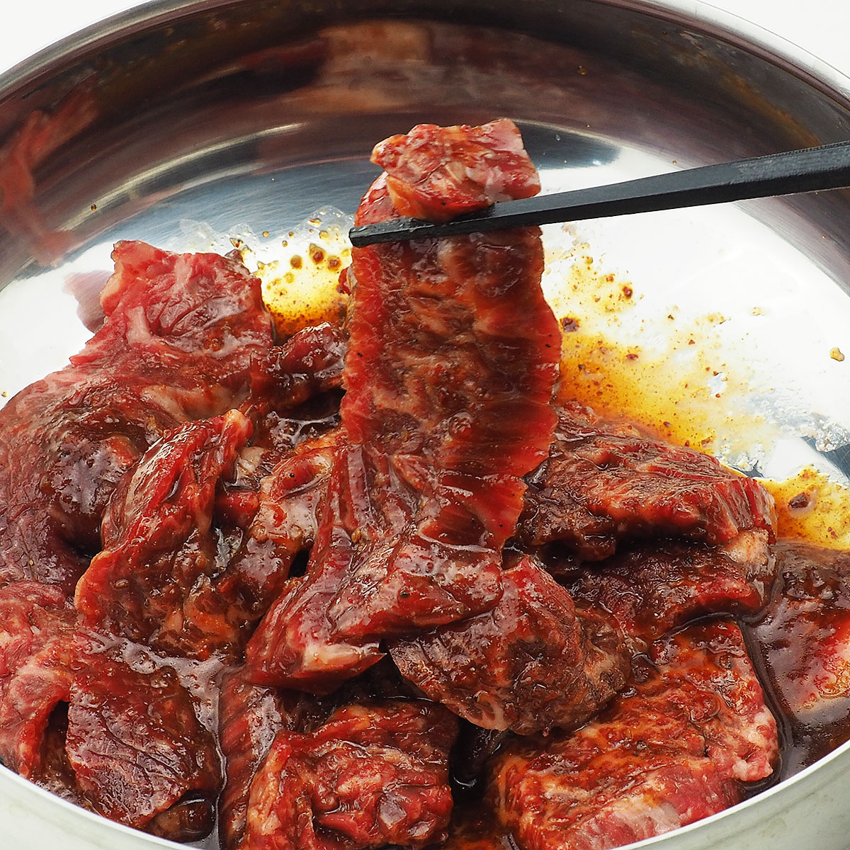 ・タレにお肉をもみこんでから焼く(煙が出ますが、本格的な焼肉屋さん風に。)