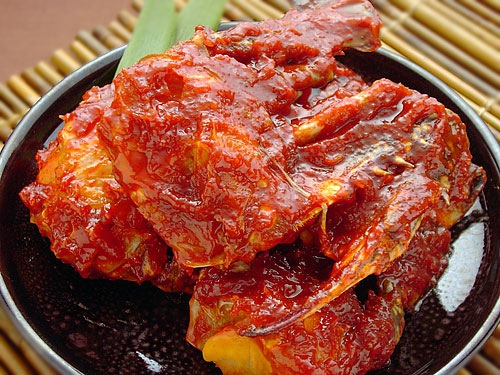 手に持って、口のまわりを真っ赤にしながら豪快にしゃぶって吸い取るようにして食べれば、身のうまみもヤンニョンジャンの旨みも両方いっぺんに楽しめます。
