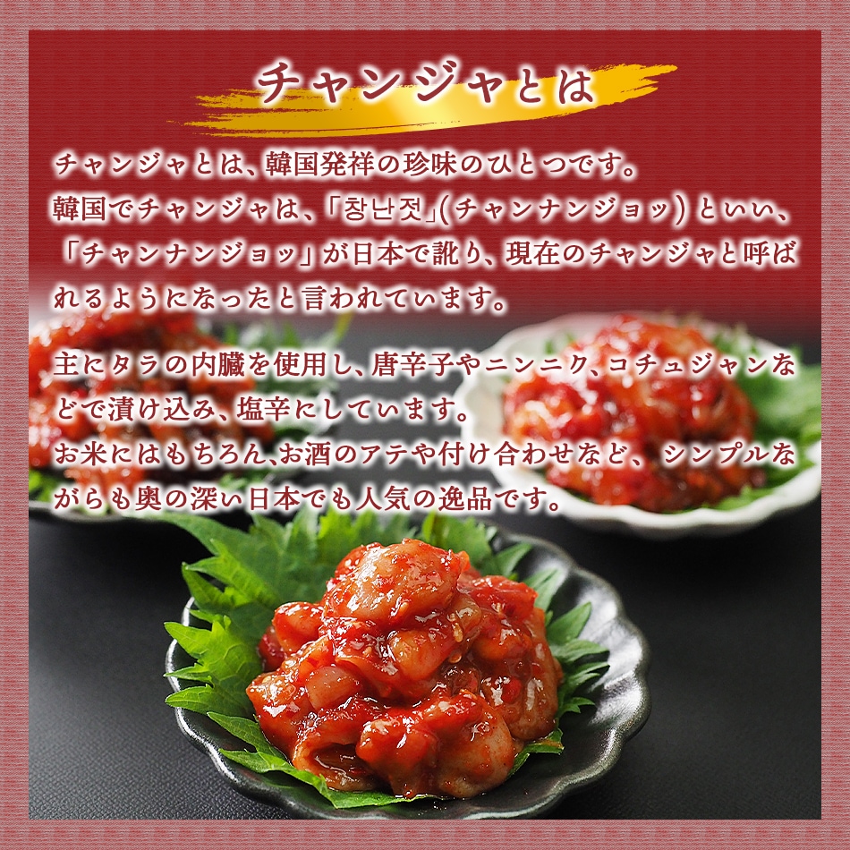 チャンジャは慶尚道の方言で、正しくはチャンランジョッといいます。日本ではチャンジャですっかり定着しました。噛めば噛むほどクセになる韓国を代表する高級珍味です!