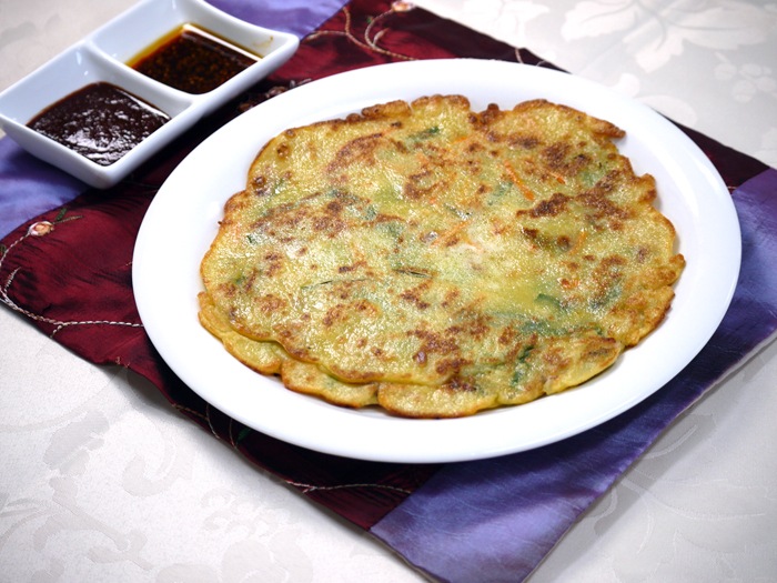 小麦粉と卵をベースにした生地にニラや玉ねぎなどの野菜と、イカ等の海鮮類を具材にして焼いた料理で、まわりはカリッと、中はフワフワした食感が人気の韓国料理です。