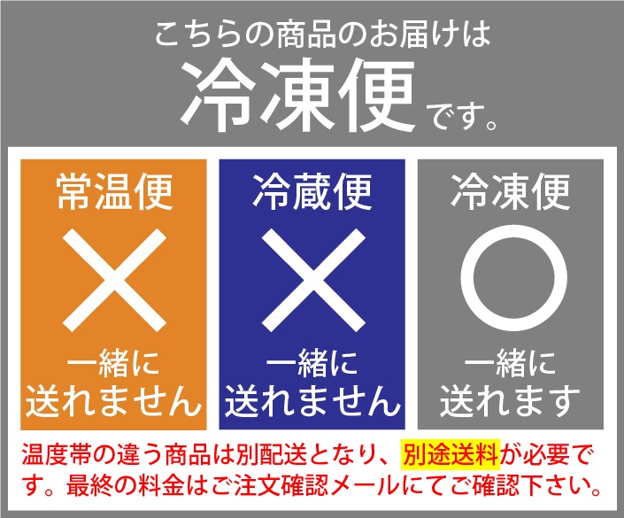 【配送方法】「冷凍便」でのお届けです。冷凍不可商品と同時ご注文の場合は、別途送料を頂戴する場合がございます。