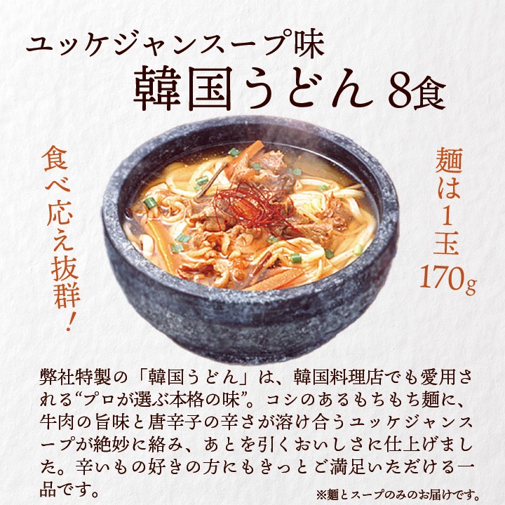 韓国うどんユッケジャンスープ味 8食(麺170g×8玉、濃縮スープ8袋)