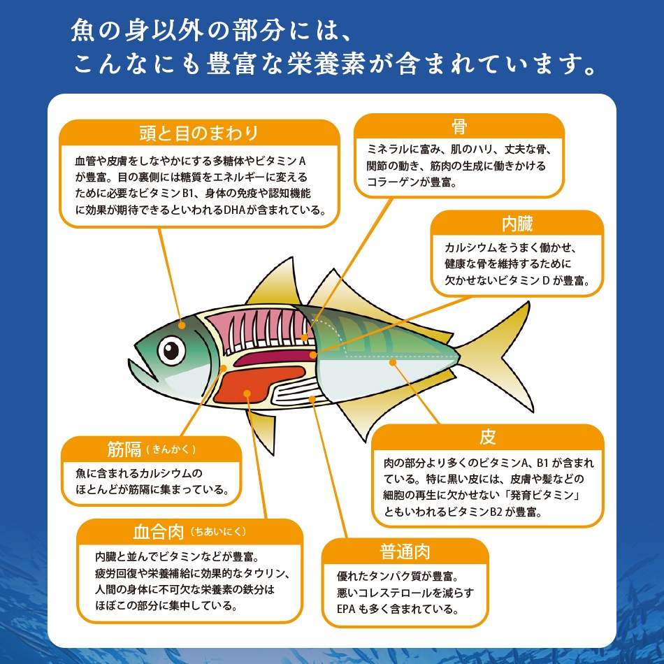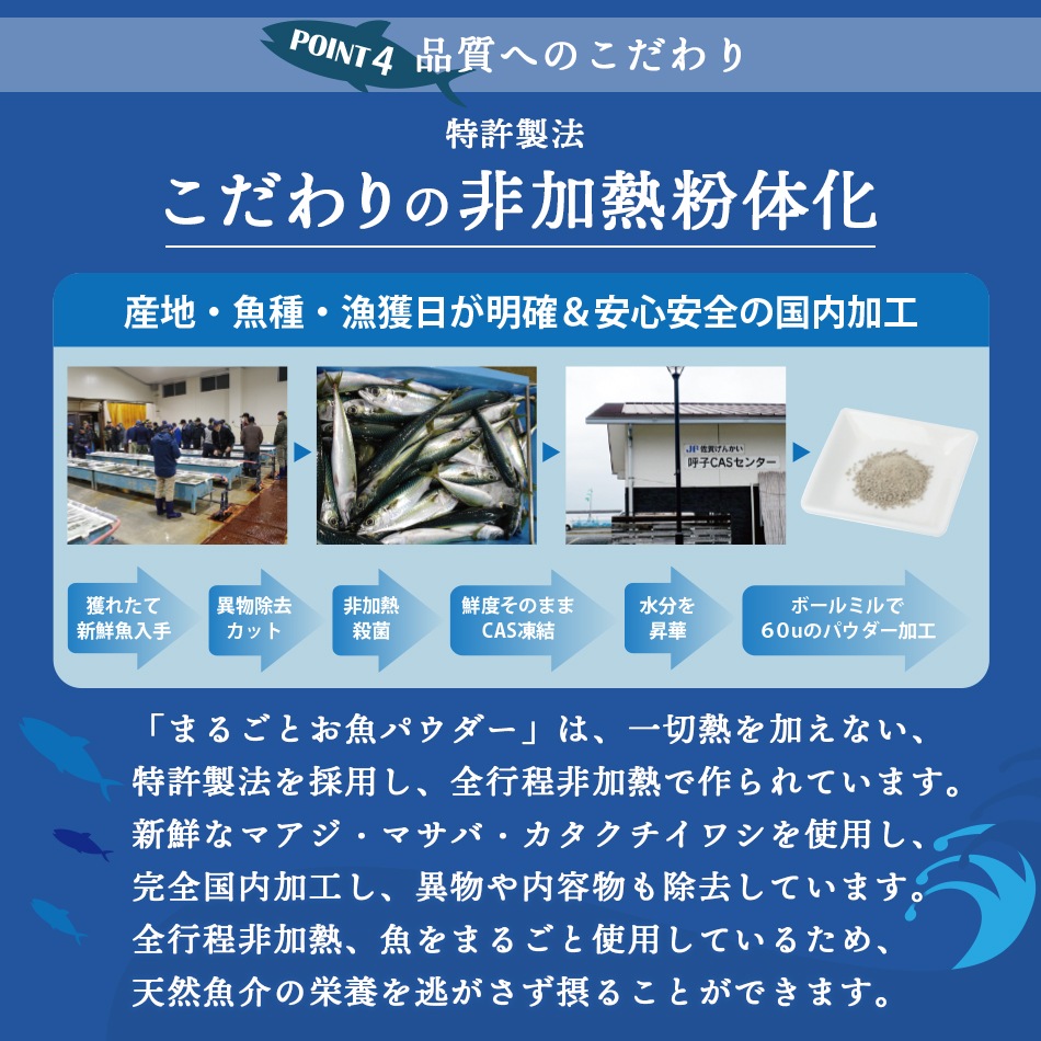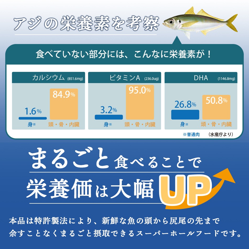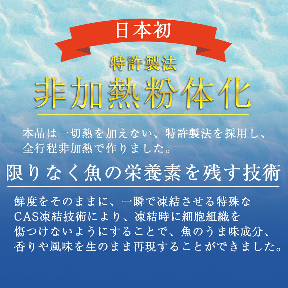 特許製法により、お魚まるごとの栄養がとれます。